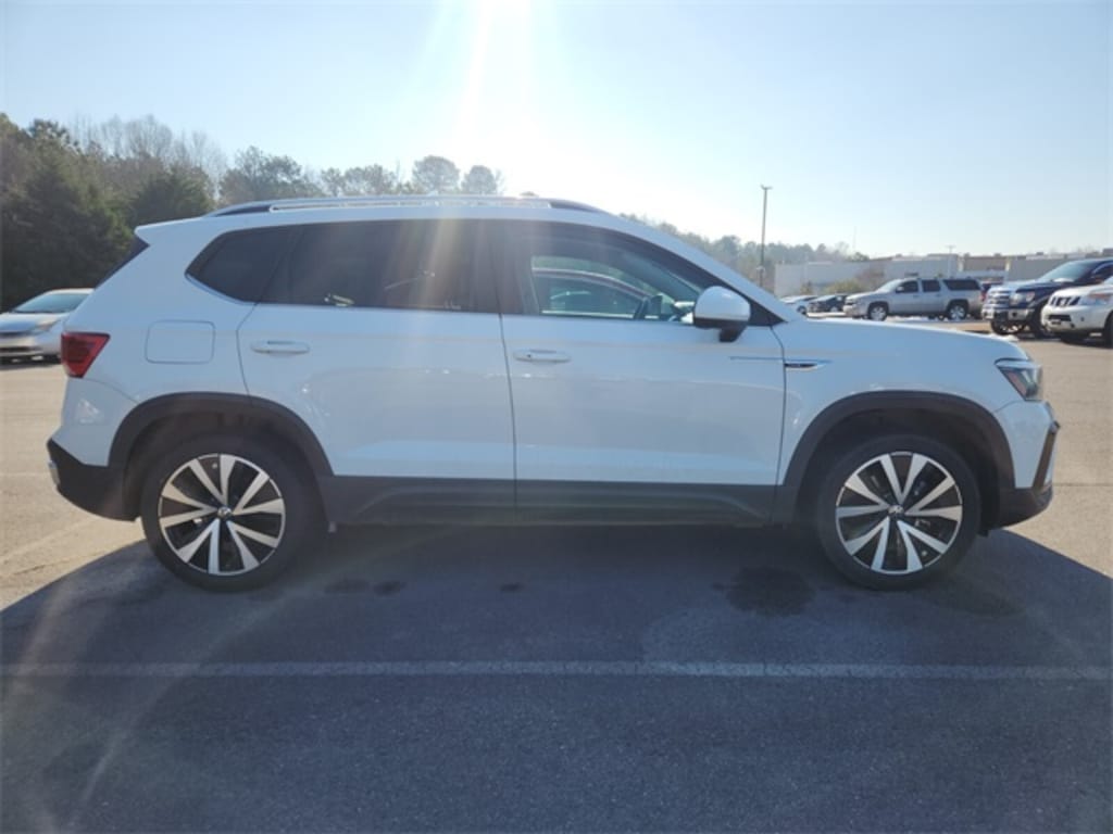 One Owner, Clean CarFax, Leather, Heated Seats, Backup Camera / Rear View Camera, Bluetooth, Premium Audio, Aluminum Alloy Wheels, Blind Spot Warning System, Rear Cross Traffic Alert System, Lane Keep Assist, Cruise Control, Forward Collision Warning, Automatic Emergency Braking, Lane Departure Warning, *** 1 OWNER CARFAX ***, *** CLEAN CARFAX ***, Premium Wheels, Steering Wheel Controls, USB / AUX Ports, Taos 1.5T SE, 4D Sport Utility, 1.5L I4 Turbocharged DOHC 16V LEV3-SULEV30 158hp, 8-Speed Automatic with Tiptronic, FWD, Pure White, French Roast/Black w/Perforated Vienna Leather Seating Surfaces, 3.23 Axle Ratio, 4-Wheel Disc Brakes, 6 Speakers, ABS brakes, Active Blind Spot Monitor, Air Conditioning, Alloy wheels, AM/FM radio: SiriusXM with 360L, Auto High-beam Headlights, Brake assist, Bumpers: body-color, Compass, Delay-off headlights, Driver door bin, Driver vanity mirror, Dual front impact airbags, Dual front side impact airbags, Electronic Stability Control, Emergency communication system: VW Car-Net Safe & Secure 5-year, Exterior Parking Camera Rear, Front anti-roll bar, Front Bucket Seats, Front Center Armrest, Front reading lights, Front Strut Rear Torsion Beam Suspension, Front wheel independent suspension, Fully automatic headlights, Heated door mirrors, Heated Front Comfort Seats, Heated front seats, Heated steering wheel, Illuminated entry, Leather Shift Knob, Low tire pressure warning, Occupant sensing airbag, Outside temperature display, Overhead airbag, Overhead console, Panic alarm, Passenger door bin, Passenger vanity mirror, Power door mirrors, Power driver seat, Power steering, Power windows, Radio data system, Radio: MIB3 Composition Media AM/FM/HD, Rain sensing wipers, Rear anti-roll bar, Rear seat center armrest, Rear window defroster, Rear window wiper, Remote keyless entry, Roof rack: rails only, Security system, Speed control, Speed-sensing steering, Split folding rear seat, Spoiler, Steering wheel mounted audio controls, Tachometer, Telescoping steering wheel, Tilt steering wheel, Traction control, Trip computer, Variably intermittent wipers, Wheels: 18" 2-Tone Machined Alloy.