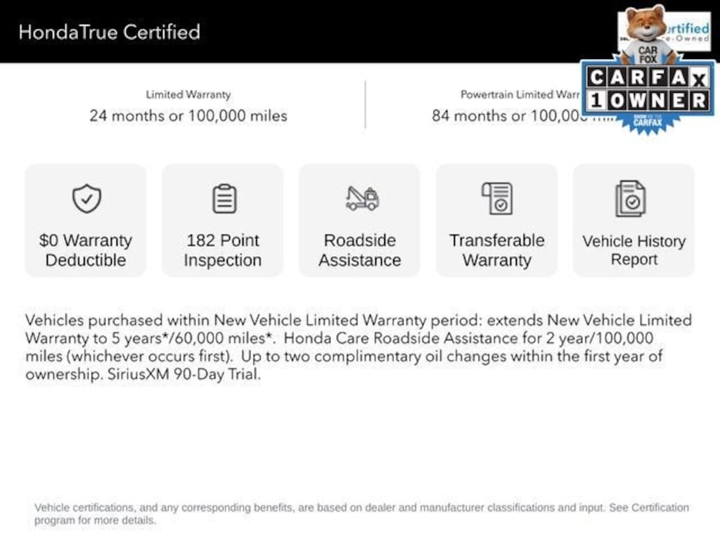 This Honda Accord Hybrid Touring is also backed by the prestigious HondaTrue Certified program, providing you with the peace of mind that comes with a 182-point inspection, 24-month/100,000-mile limited warranty, and 84-month/100,000-mile powertrain warranty. Roadside assistance, two complimentary oil changes, and a SiriusXM 90-day trial further enhance the ownership experience.